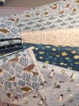 This bundle includes one half yard cut of each of these fabrics, Turtely Cool, Jawsome, Sand Dollars, Any-Fin is Possible, and Just Wing It. These prints are from the Beyond the Sea collection by Dear Stella, and coordinate with the 24" Beyond the Sea Panel. This collection is perfect for baby and toddler quilts, iSpy projects, wallhangings, and home decor.